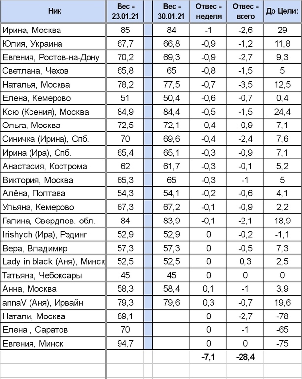 За неделю мы вместе скинули 7,1кг (неплохо, неплохо), а с начала марафона - аж 28кг!