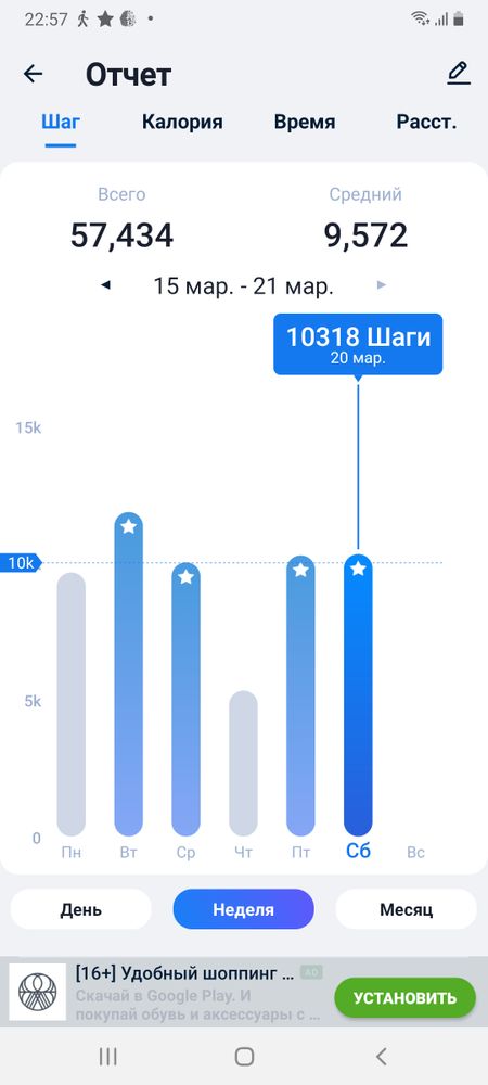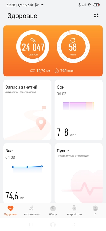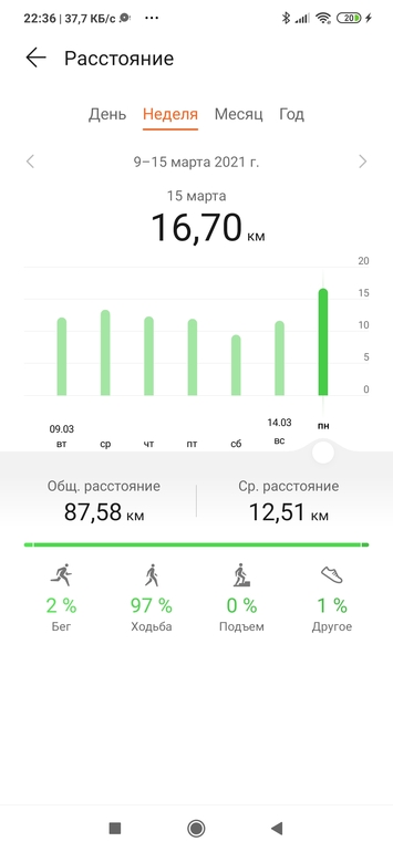 Привет! За сегодня, 15 марта. Зарядки не было, но находила 24 тысячи шагов или 16,7 км. Залезали на гору, занимались сендеризмом: