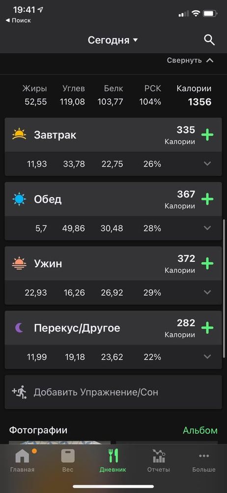Где-то перебор? Или наоборот увеличивать кол-во еды разгоняя метаболизм? Но есть особо не хочется. Еще мне кажется где-то ошибка в обеде, приложение считает что в куриной ножке 25 гр. белка (в чем я сомневаюсь) , я хз как считать эту ножку правильно, я взвесила вместе с костью)