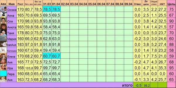 Доброе утро девочки!! Я новенькая. У вас очень теплая и дружная компания! Давно читаю отчетики, вы просто молодцы все, есть с кого брать пример!!!! Всем удачи в нашем нелегком деле! Мой рост 172. Вес 70.5. Цель 61кг. Цель на конец месяца 65кг.