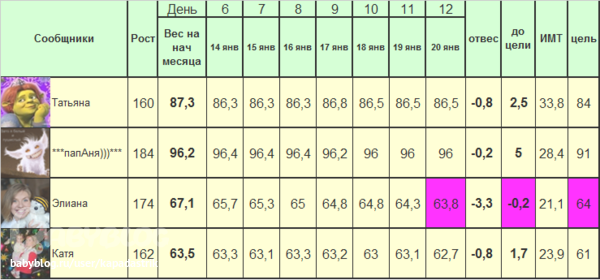 Отчеты-результаты (только для модераторов)Если я правильно поняла, то по выходным мы пишем только вес, без меню = ))