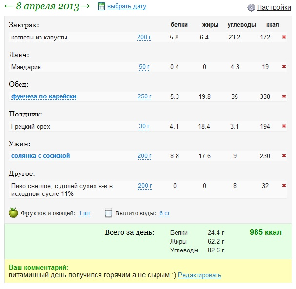 Вес после разгруза 60,7 кг. Был курино овощной разгруз. ну и чайку два раза зеленого попила. 1 раз с долькой шоколадки. 1 раз с медом.
