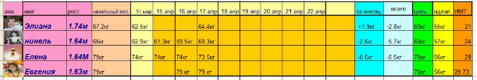 - Нина,у тебя в таблице цель стоит 60кг. мы ее пока оставляем или уже меняем на другую? если меняем то что ставить?