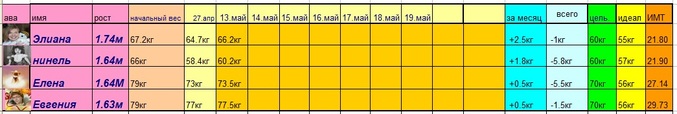 засунула табличку в самый низ поста по причине того что гордиться нам тут совешенно нечем,у всех после майских плюсики образовались :(