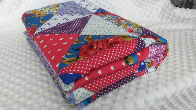 Одеяло выполнено в стиле лоскутного шитья из качественного американского хлопка,изнанка-бязь. Наполнитель американского производства 50% хлопок+50% шерсть,гипоаллергенный,что идеально подходит малышам.
