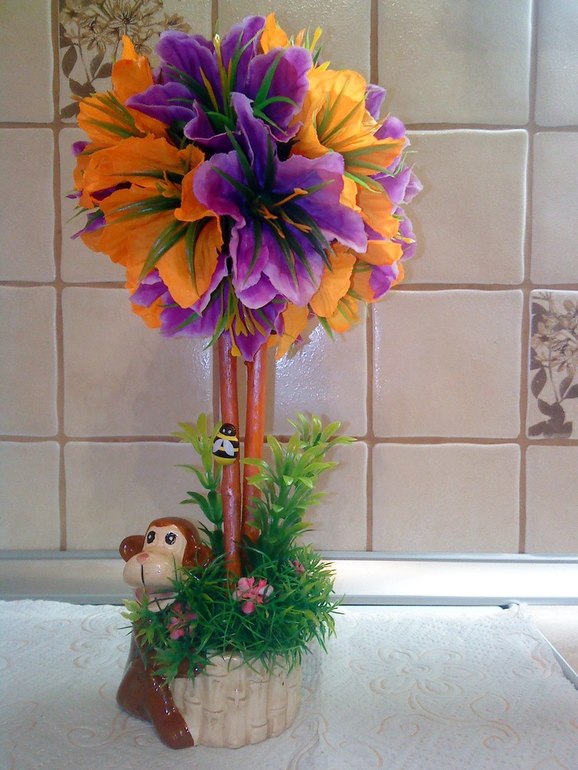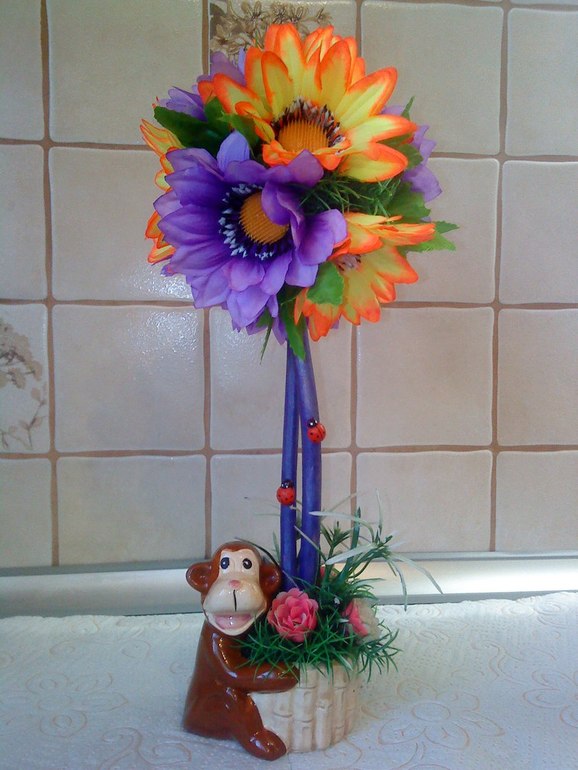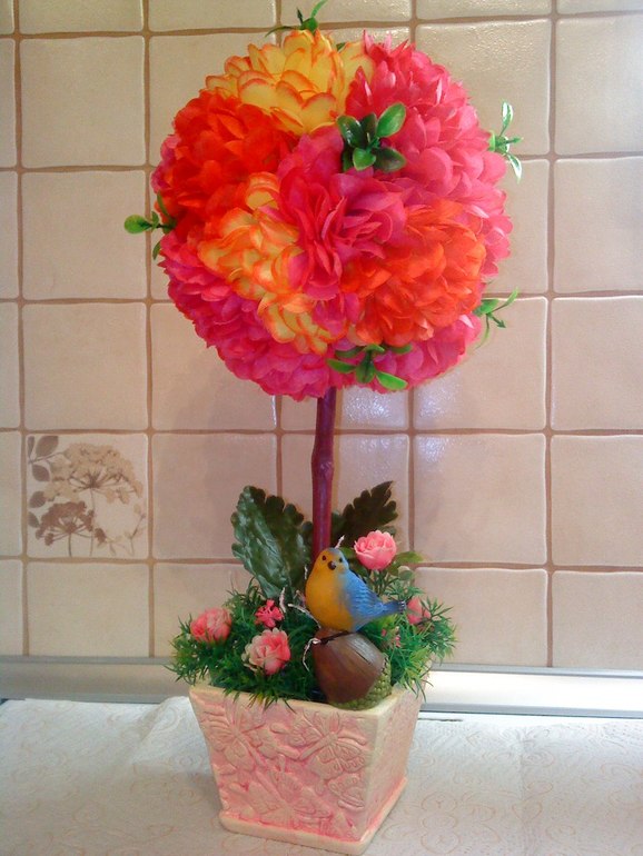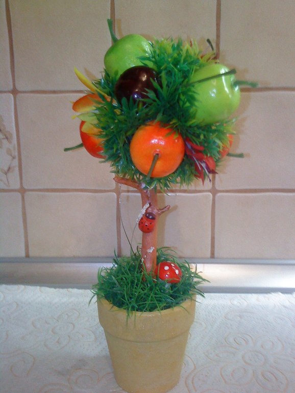 В наличии новая цветочная композиция в глиняном горшочке "Краски лета" 20см. В работе использованы: розочки из атласных лент, розочки из фоамирана, шишки лиственницы, сахарные тычинки, декоративные яблочки, зелень, декоративные украшения. Горшочек глиняный, украшен атласной лентой. Санкт-Петербург.