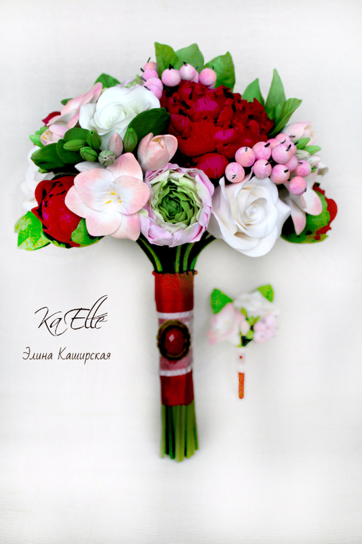 Девушки, будущие невесты, предлагаю Вам замечательный букет, выполненный из атласных лент и брошей.