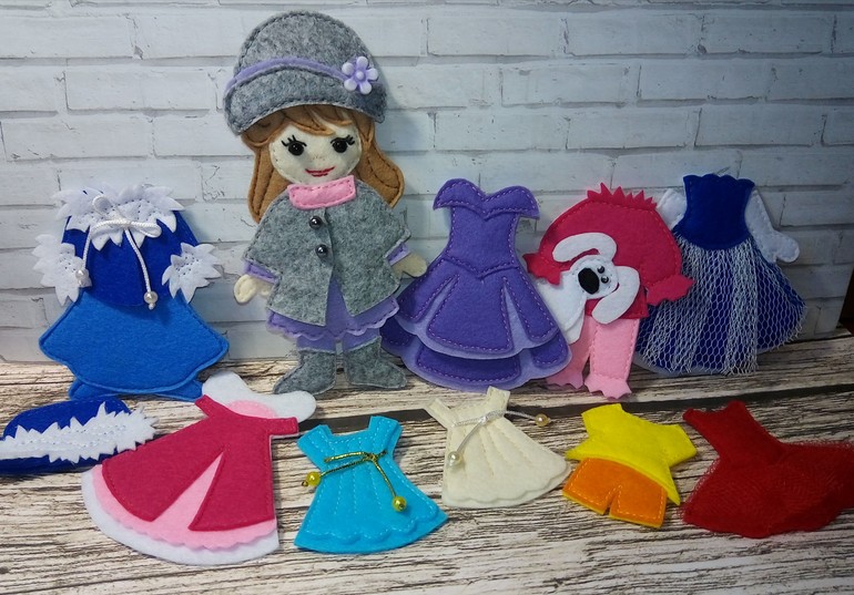 В наличии кукольный домик из фетра. В состав планшета входит кукла со сменной одеждой.