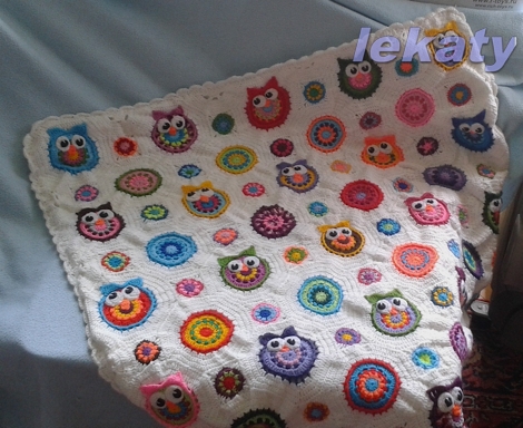 Вот я и связала свою давнюю-давнюю хотелку) плед размером 83х83 см, связан из остатков акриловой и смесовой пряжи ( совы), основная пряжа( белая) -акрил, вся пряжа для детского вязания, так что плед подходит для ребенка с рождения и лет до полутора, может, побольше. Плед на флисовой подкладке, получился мягким, нежным и очень теплым)![]()