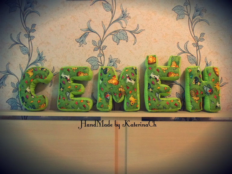 Изначально интерьерные буквы-подушки для братика с сестрёнкой Евы и Льва выглядели так
