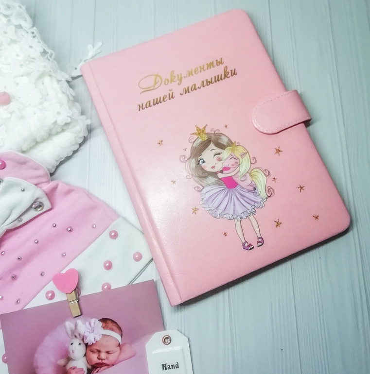 Внутри файл который вместит свидетельство о рождении, снилс, полис нового образца и полис старого образца, по бокам вместительные карманы. На один комплект документов (на одного ребёнка).