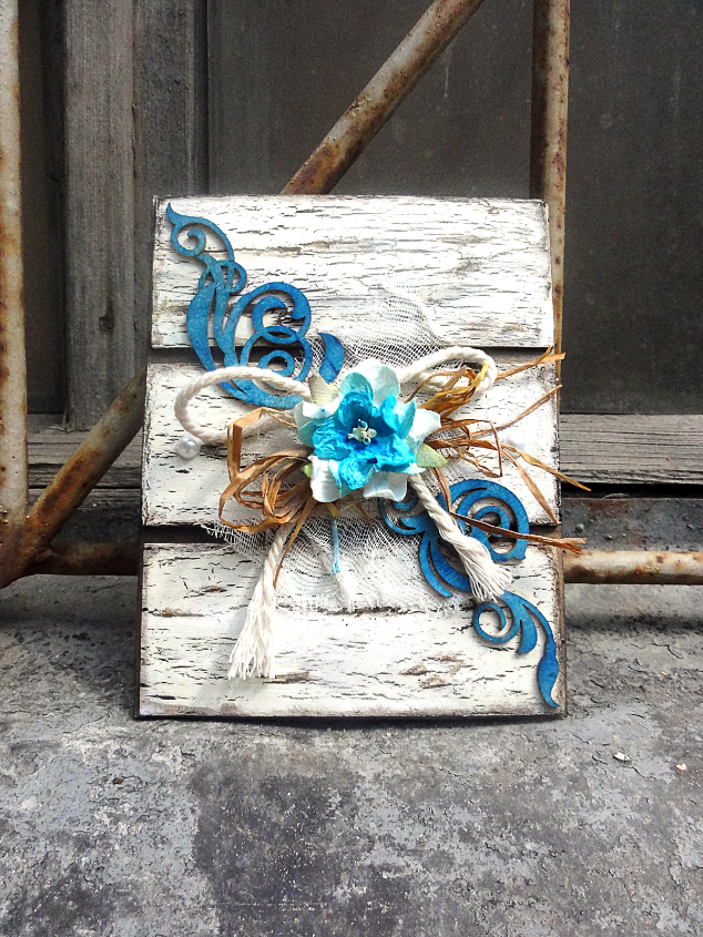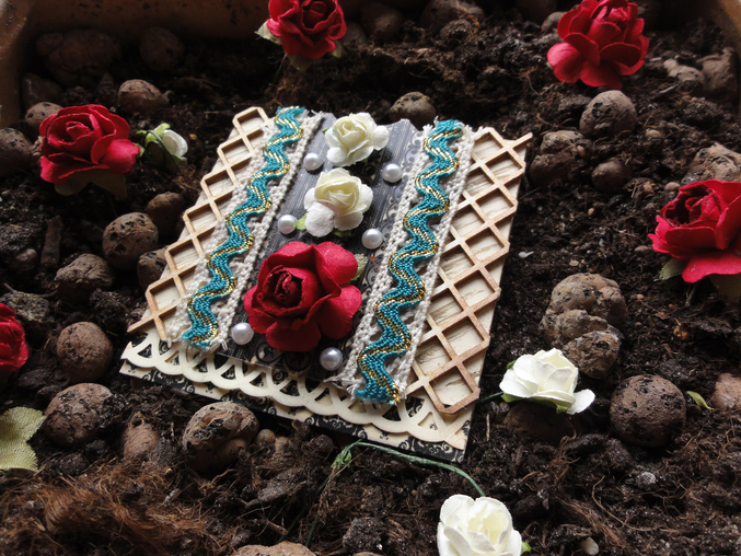 Плотная открытка в основе переплетный картон. Декорированая чипборд и цветком, полубусинами.
