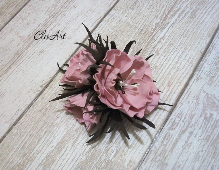 Брошь из фоамирана в теплых розово-коричневых тонах. Станет прекрасным дополнением как к вечернему платью, так и к офисному костюму.