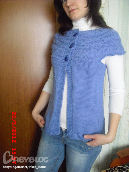 Вяжу на продажу и обменПродаю вязаную жилетку. 50% шерсть, 50% акрил.Размер 44-46.