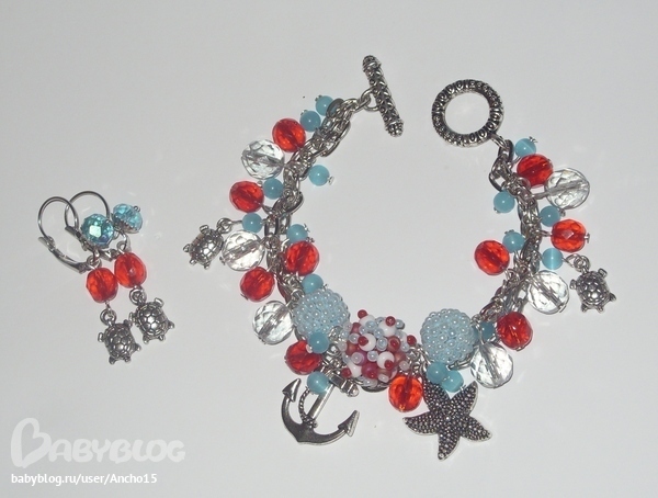 3. Браслет "Морячка". Тематический браслет, выполнен из гранёных бусин, бусин оплетённых бисером, кошачьего глаза и фурнитуры под серебро.