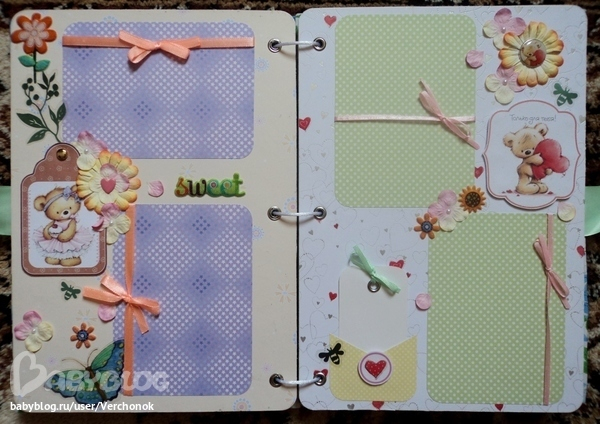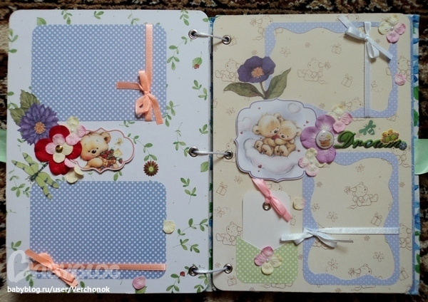 Скрапбукинг (альбомы, открытки и пр.)Формат А4, мягкая тканевая обложка, 6 разворотов. Цена 2500. Альбом на кольцах металлических (на фото-на шнурочках, это временное было крепление).