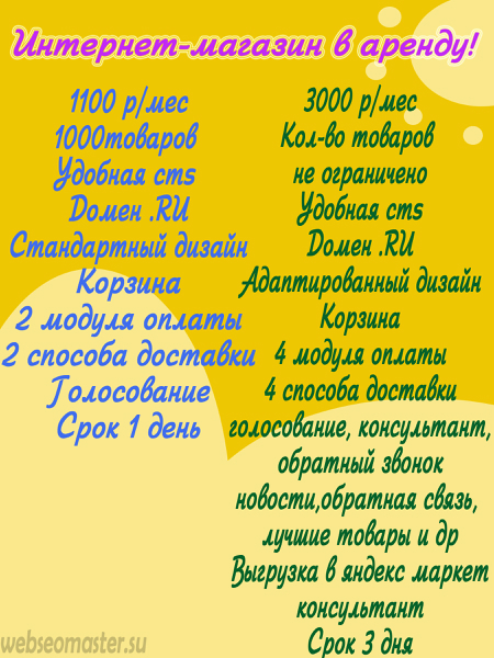 ПрочееПредлагаем вашему вниманию сайты, интернет-магазины, интернет-портфолио, с другими услугами нашей студии (создание сайтов, реклама, контент, SEO) можно ознакомиться на сайте http://webseomaster.su/