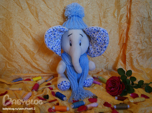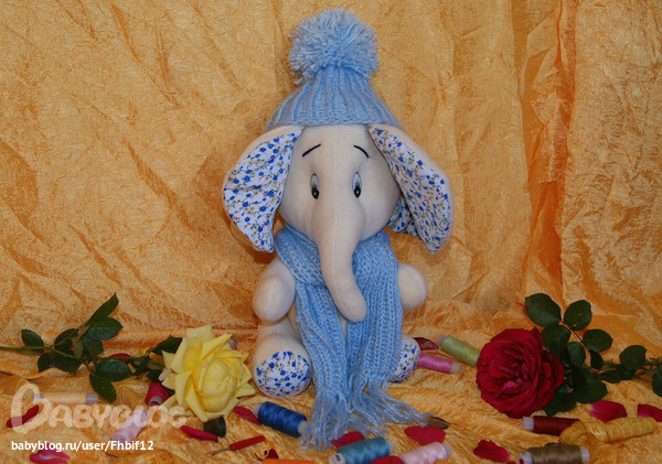 Куклы и игрушкиСлоник сшит из флис+кашибо, глаза пластмассовые,наполнитель холофайбер . Лапки двигаются ,может стоять и сидеть, украшения: пуговицы на всех лапках.Шапочка и шарфик связан из полушерсти, снимается.Можно сшить любого делаю на заказ.