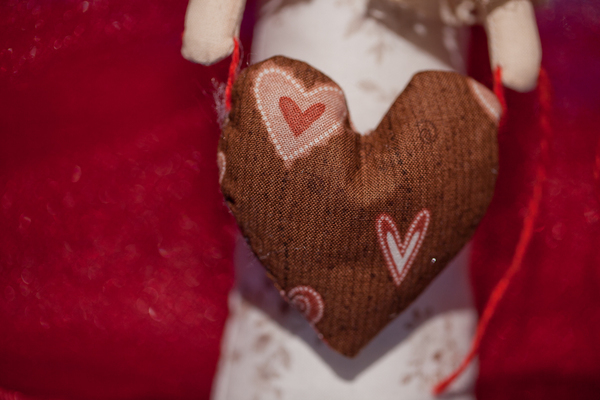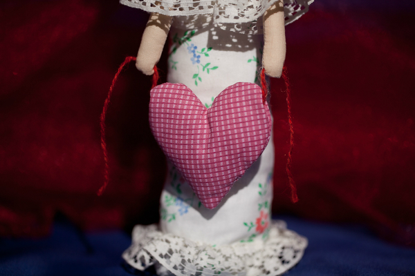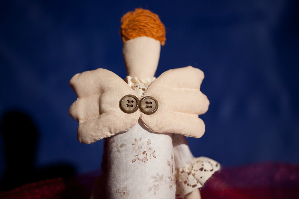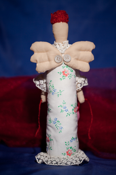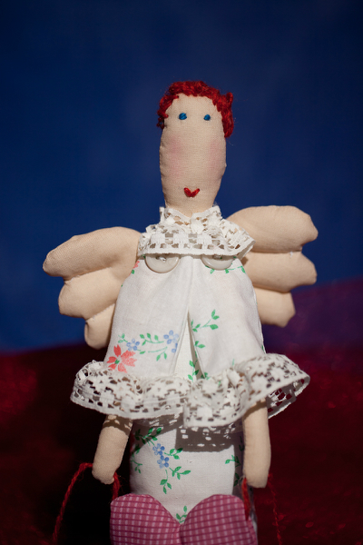 Кукла выполена из 100% хлопка, украшена винтажным кружевом. В руках Ангел держит сердце.