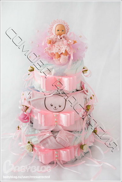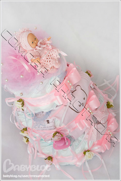 Оригинальные подарки для новорожденых (торты из памперсов и пр.)Изготовлю для малыша торт из памперсов и не только. А также связу шапочки и пинетки, подробнее на странице или в личке.