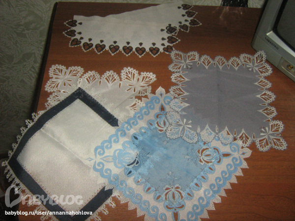 Девочки ответьте пожалуйста на вопрос купили бы вы такие вещи и если да то за сколько. Далее представлены броши, салфетки, платочки, гороскоп.