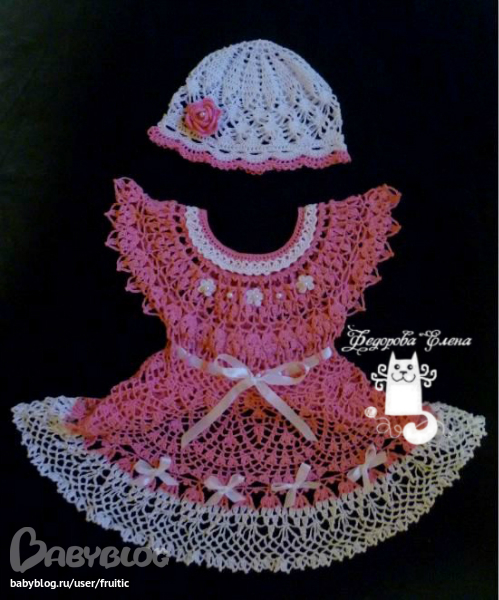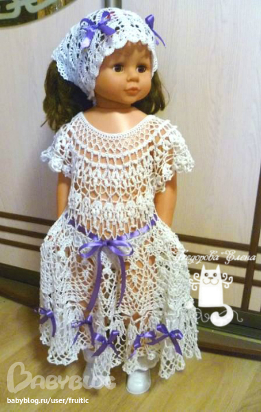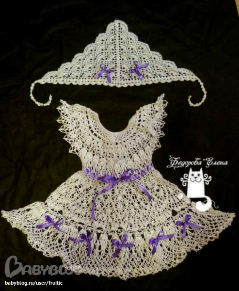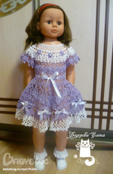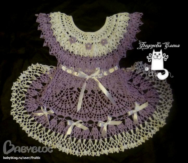 2) Платье сиреневое на 1-2 года, цена 2300 руб (возможно по вашему заказу связать головной убор в комплект)