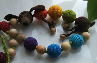 Развивающие игрушки и слингоаксессуарыСостав: можжевеловые бусины, хлопок, наполнитель синтепух, пластиковые или валянные бусины в некоторых моделях.