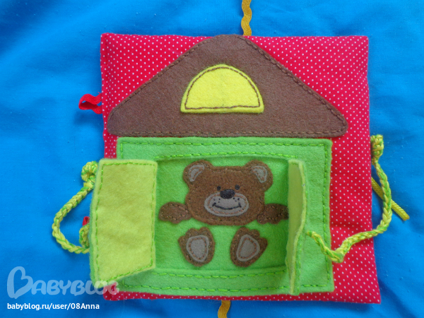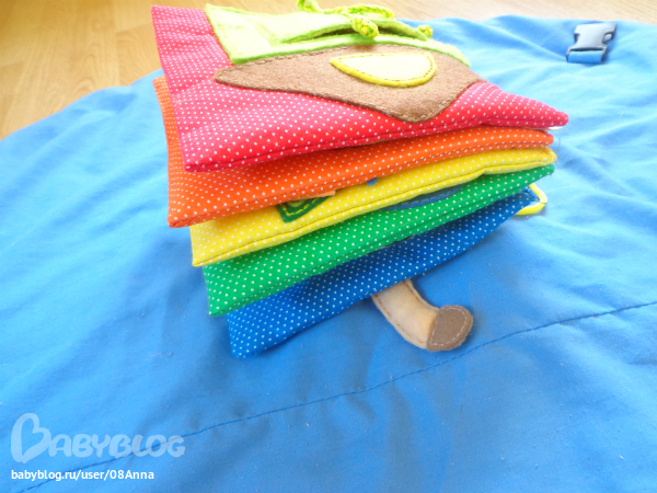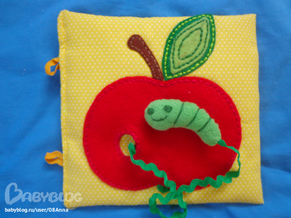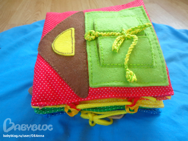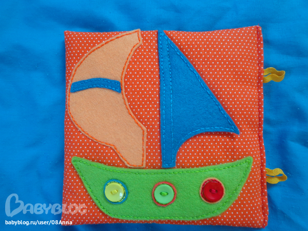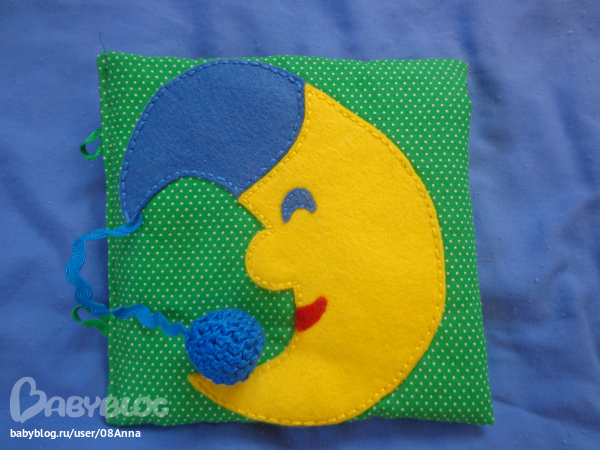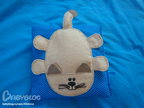 В данной книжке 10 картинок, все картинки пришиты вручную, использован фетр, флис и американский хлопок, внутри синтепон. Развивающая книжка-игрушка для малыша , очень яркая и позитивная.познакомит ребенка с разными персонажами, шуршалки, замочки, шнурки, бусины и все то что очень любят карапузы.