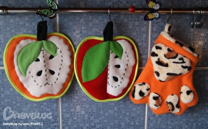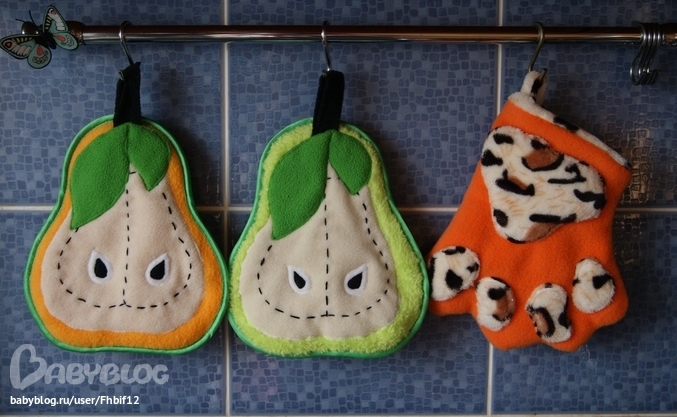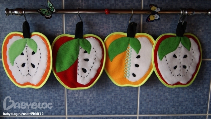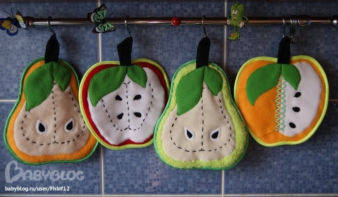 Шью на продажу и обменЯркие, очень весенние кухонные прихватки в виде яблок и груш и рукавички в виде лапки ,для умелой хозяйки, которая любит создавать уют в своем доме.Прихватки и Рукавички сделаны из флиса,по краям обшиты атласной тесьмой .Можно из прихваток и рукавички собрать набор ,можно купить все по отдельности. Декоративные прихватки и рукавички украсят и оживят любую кухню, придадут вашей кухне индивидуальность и подарят солнечное и весеннее настроение! Порадуйте себя или своих близких приятным и полезным подарком. Прихватки для вашей кухни,могут быть выполнены в любой цветовой гамме. Цена прихватки 230р ,цена рукавички 250р.Если брать 2 прихватки и одну рукавичку то цена 650р.Авторская ручная работа