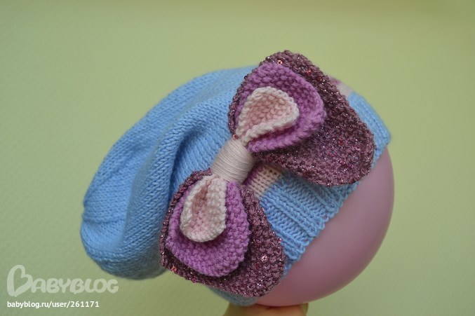 Шапочка с большим бантом.Тонкая мериносовая шерсть(Италия) Цена 1000руб.