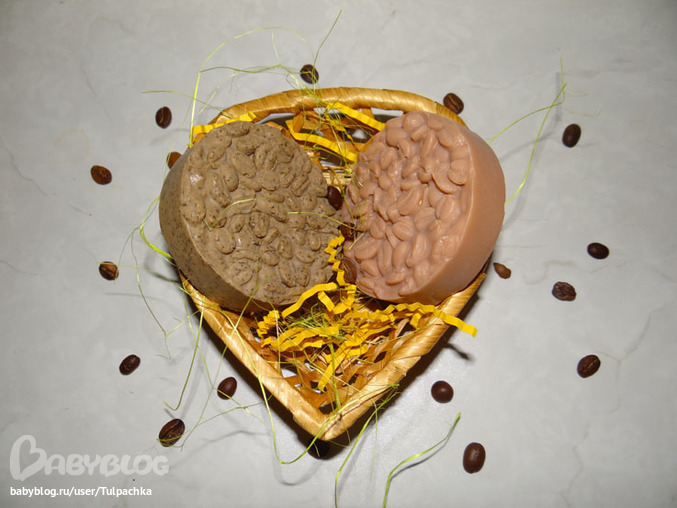 Набор "Кофейная парочка" - два мыла из основы без лаурилсульфата натрия. Одно - со скрабящим эффектом. С добавлением натурального молотого кофе. Аромат - "Каппучино". Цена - 220 рублей.
