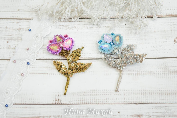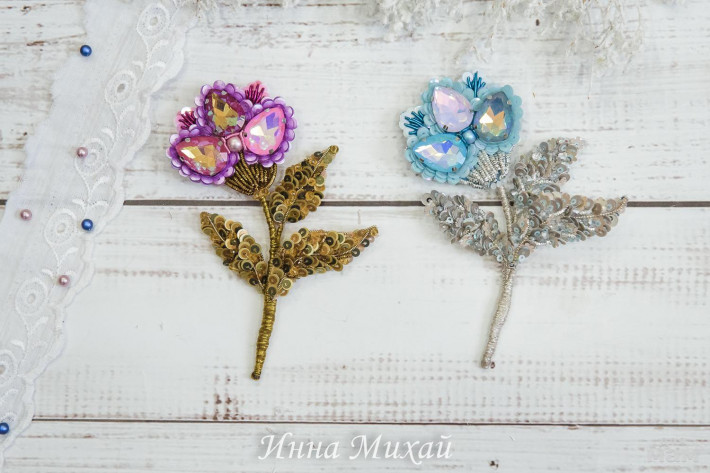 3. Брошь объемная. Все цветы, листики и бутоны на подвижных веточках. Использовала лучшие материалы. Кристаллы и бусины Сваровски, французские и итальянские пайетки, синель, канитель, изнанка- натуральная замша и 2 японские булавочки с поворотным механизмом. Брошь в наличии 4500 руб. Доставка +250 руб. Почтой РФ или СДЭК.