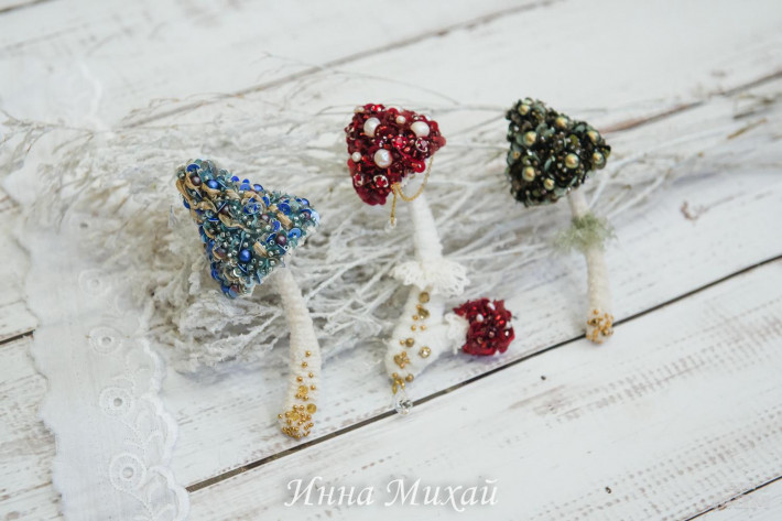 9. Мухоморчик. 3300 руб. В наличии. Материалы премиум класса. Шатоны Сваровски, подвесочки Сваровски, жемчуг, пайетки Франция, Италия. Размер грибка 9,5 см без подвески.