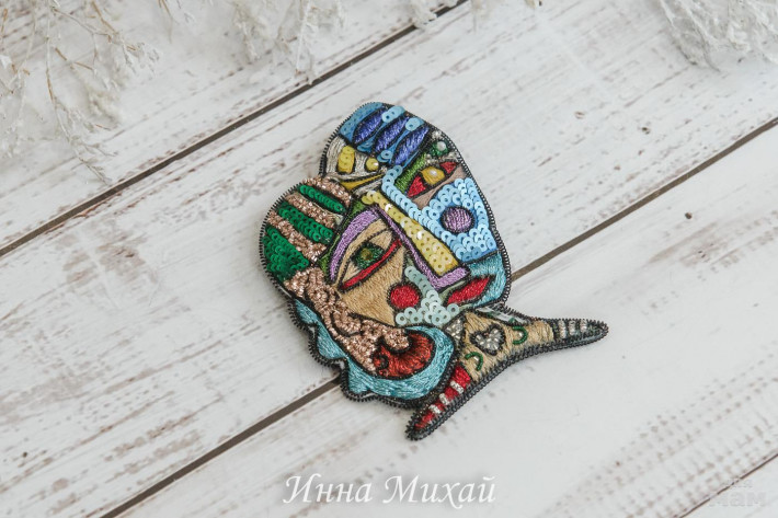 1. Моя любимая фантазия, бабочка Вышита разными техниками. В наличии 1600 руб. Размер 8,5*7 см по крайним точкам крылышек.