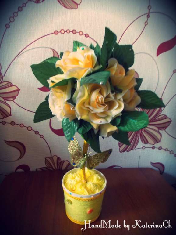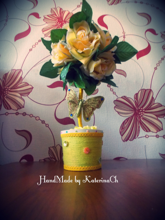 А началось всё с того, что заказала я у одной Саратовской мастерицы 2 "дерева счастья" 2ум мамулькам на Дни Рождения: маме моей и свекровушке. Забрала топиарии и ...влюбилась в них!!! А потом подумала, а чем я хуже?)))Руки, вроде, откуда надо растут))) Долго продумывала, с чего бы начать, куча мыслей в голове...В общем, вот...Не судите строго)))