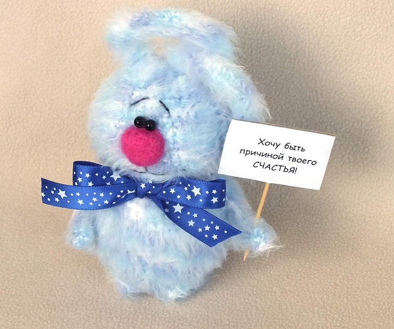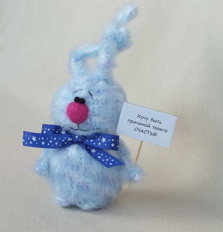 Куклы и игрушкиЗаяц связан крючком, из фактурной пряжи, валяный из шерсти носик. В лапках держит табличку. Подарите вашему близкому человеку тёплое, уютное и незабываемое признание в виде мягенькой игрушки. Такой подарок не останется без внимания, а ваша любимая особа обязательно ответит вам взаимностью.
