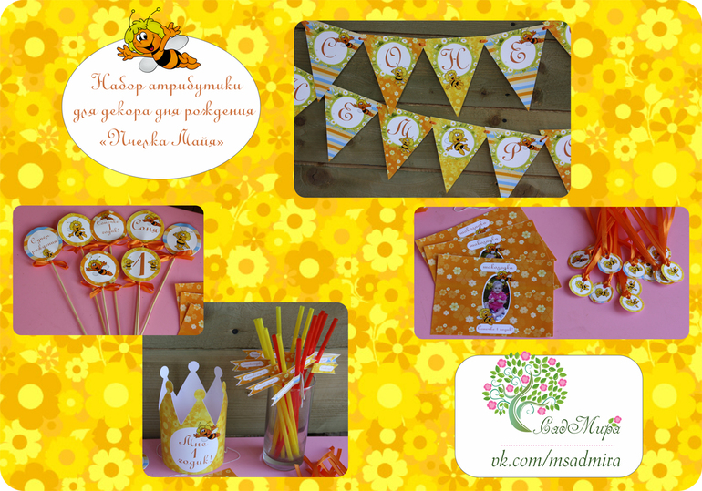 Набор атрибутики для декора дня рождения "Пчелка Майя".