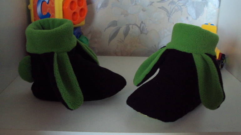 Выполнены из теплого флиса. Внутри резиночка. Подошва не скользит (кожзам). Радуют глаз и греют ножки.