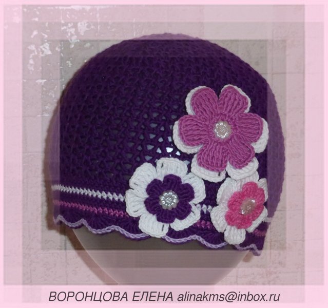 5. Летний берет. 53-55 пряжа хлопок 100%.