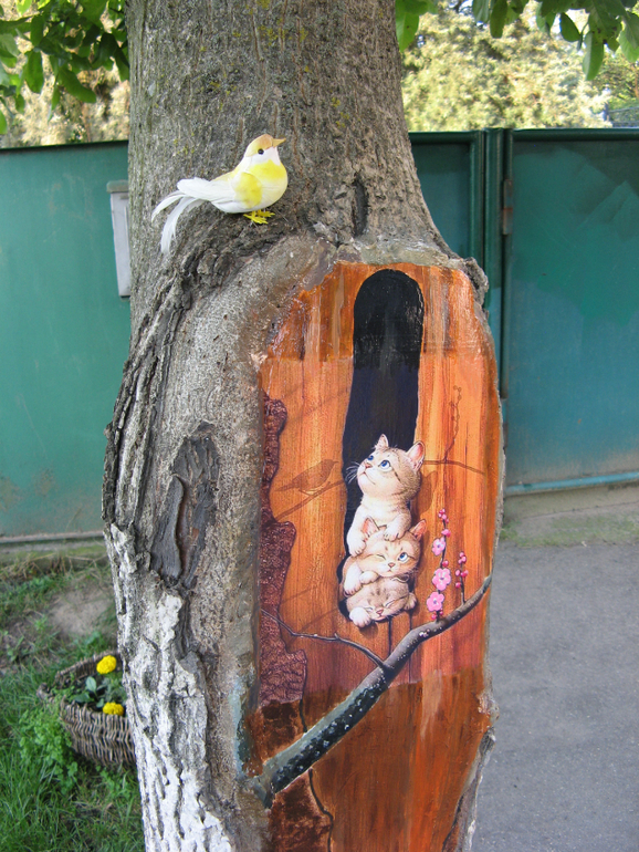 1 место 56 баллов получила работа Панно на дереве " Озорные котята " Irina.