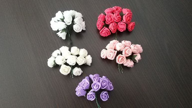 Цветы латексные 2,5 см. В букетике 12 цветком - 25р. Цена указана за букетик. (белый, розовый, неж.розовый, шампань, сиреневый)