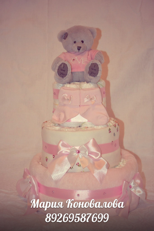 Оригинальные подарки для новорожденых (торты из памперсов и пр.)Находясь в декрете, я увлевлась изготовлением тортов и фигут из памперсов!
