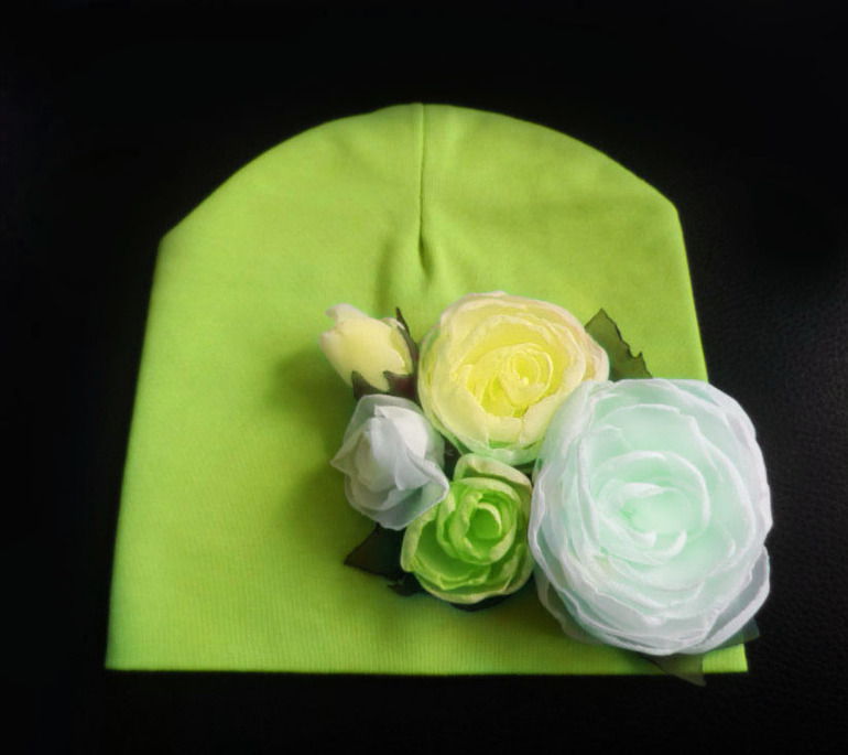 Добрый день)) спасибо) Шапочки идут на возраст от 2 лет и до 15. Шапочки идут по размерам, поэтому я подбираю именно на ваш ОГ. Цветы на шапочках идут на липучках, их можно снимать для стирки!