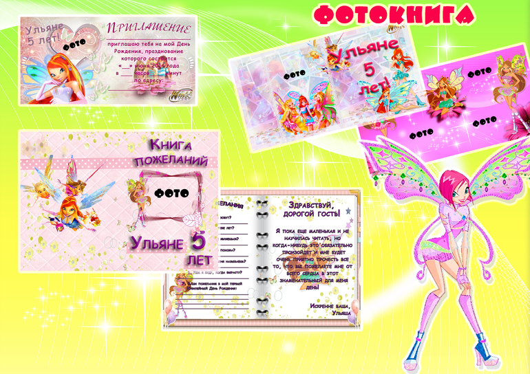 Вот такой замечательный наборчик получился для чудесной девочки Ульяны на ее 5-летие! Наборчик дополнился очень яркой ФОТОКНИГОЙ!