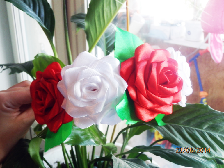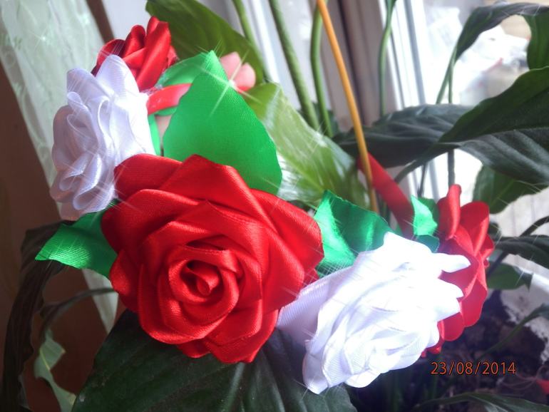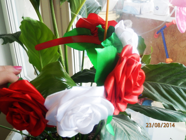 Красивый веночек из красных и белых роз,с листиками.350 р.Отправлю почтой.
