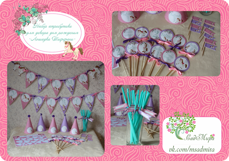 Набор атрибутики для декора дня рождения "Лошадка Тиффани".