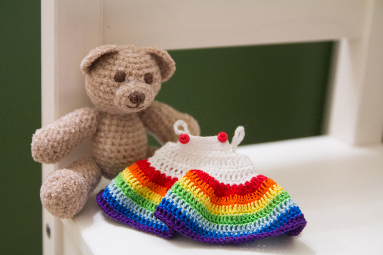 Куклы и игрушкиВот и новая игрушка - Медведица в радужном платье.