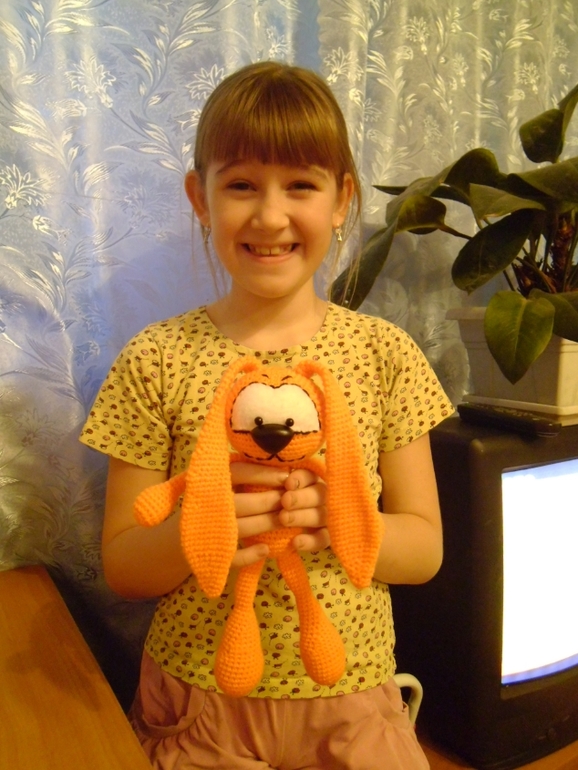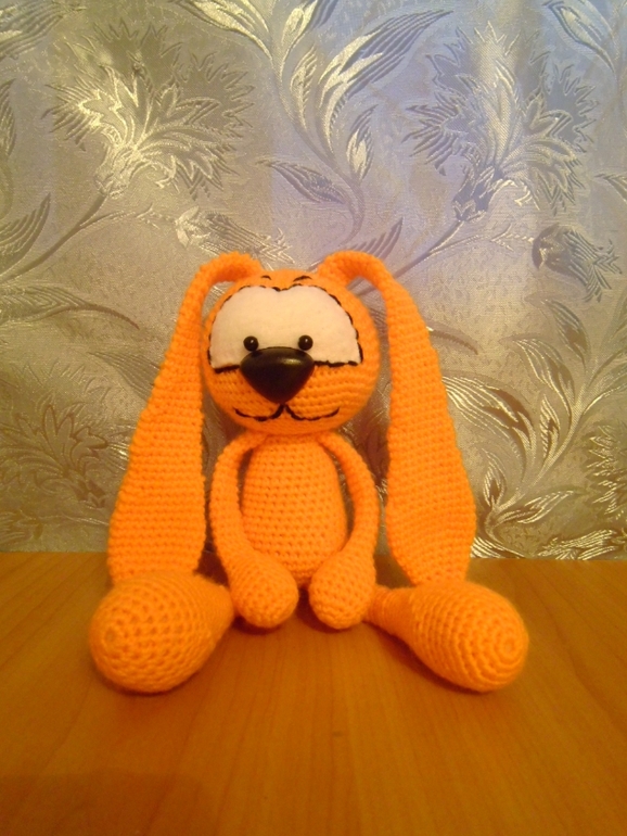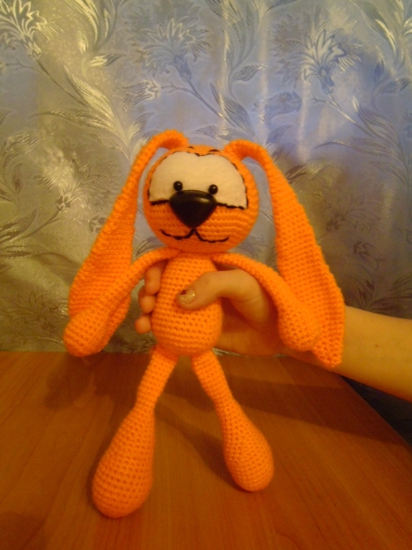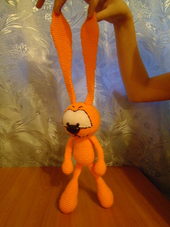 Милый зайчик необычного ярко-оранжевого цвета ищет себе хозяйку!!! Рост 25см,сидя 16 см,а стоя с поднятыми ушами 42 см. Подарите себе море позитива!!! Могу исполнить в любом цвете.Работаю с почтой.
