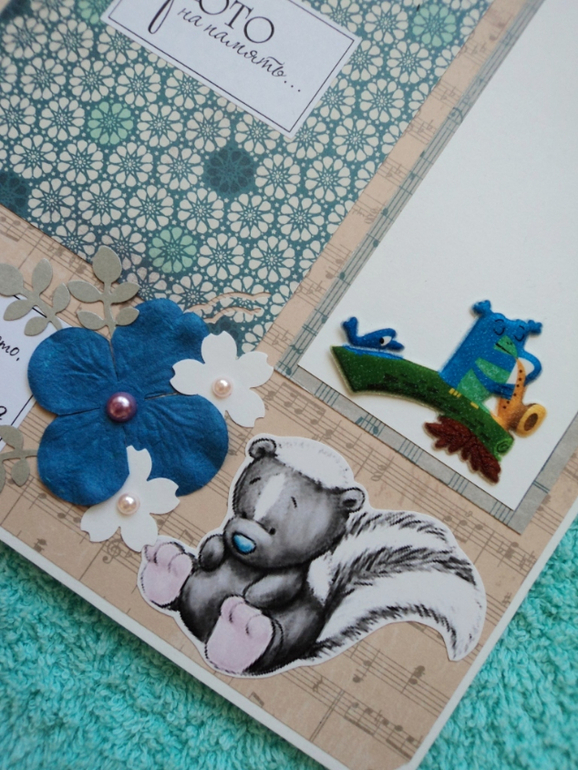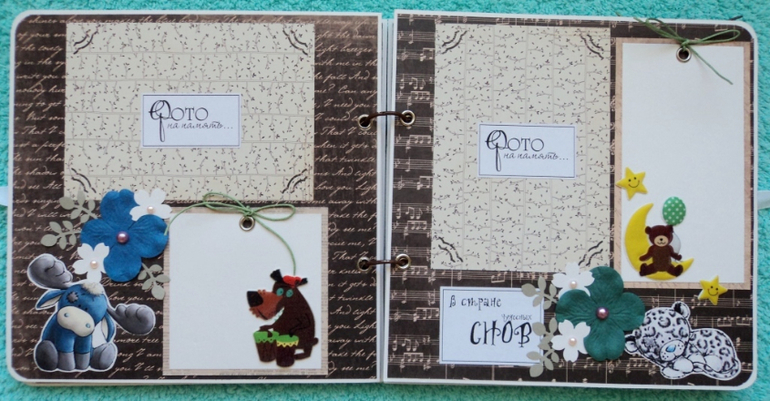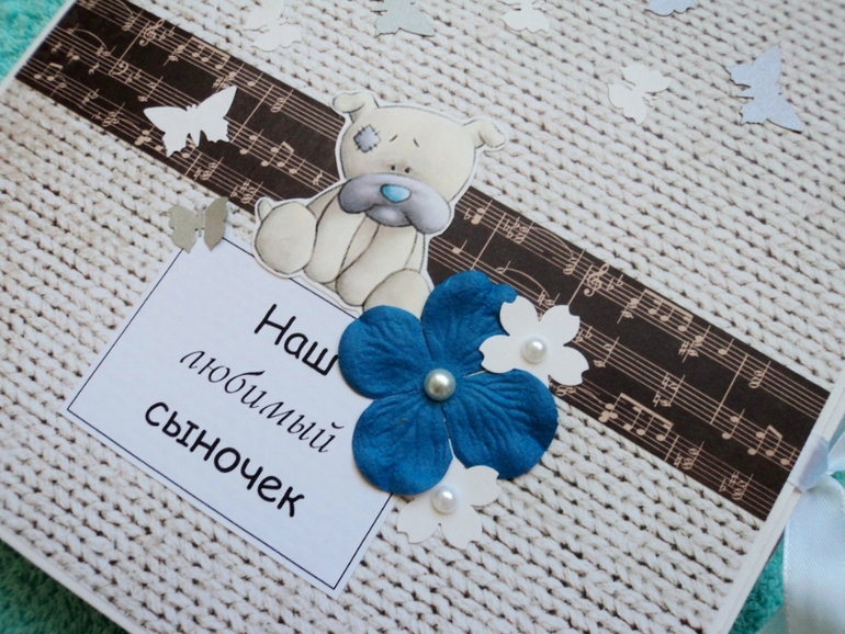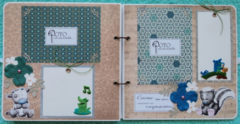 Скрапбукинг (альбомы, открытки и пр.)Вот такой очаровательный альбом для мальчика «Тёплый свитер» (бумага на обложке имитирует шерстяную вязку), 6 разворотов, с весёлыми картинками, надписями, есть места для записей. На последнем форзаце - кармашек для отпечатков ручек и ножек (при желании можно поместить туда ещё 4-6 фото на подложках). Альбом ищет своего маленького хозяина. Итак, смотрим (под катом очень много фото).