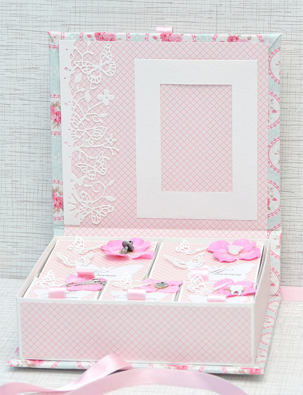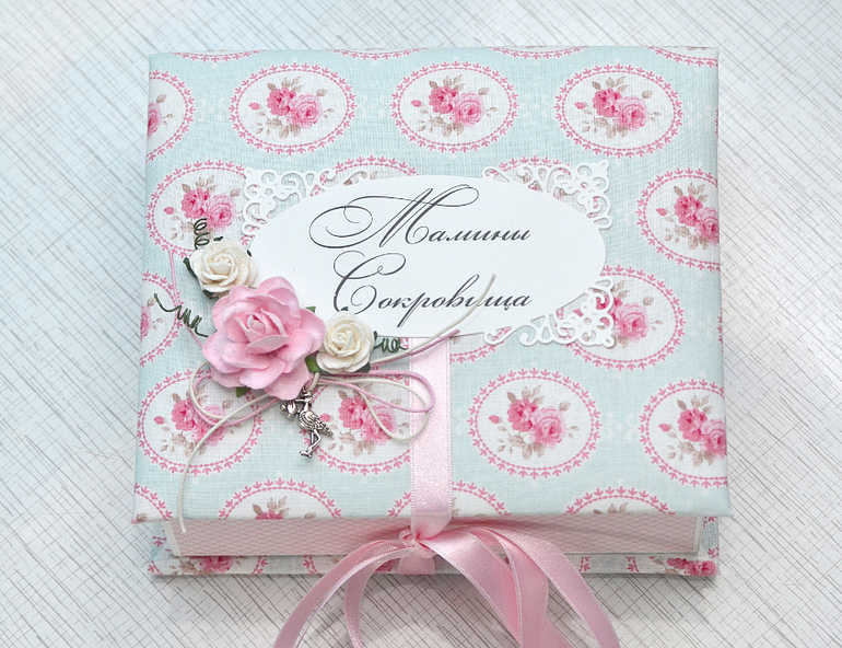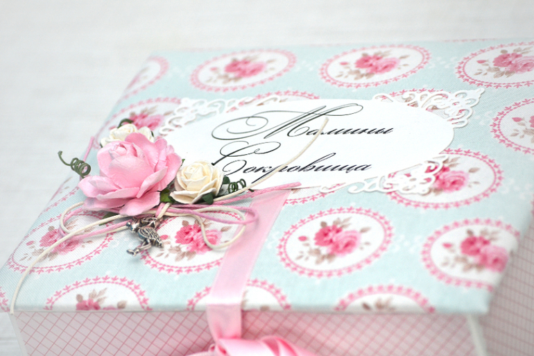 И вот мой результат - "мамины сокровища". Коробочка обтянута хлопковой тканью и проложена синтепоном. Очень мягкая и уютная)